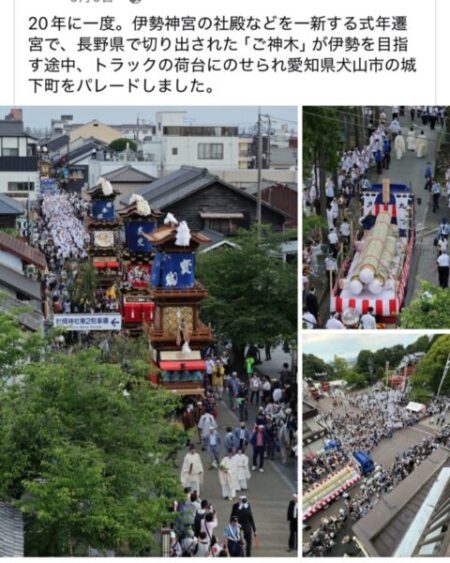 6月には、20年に一度の伊勢神宮の式年遷宮「御神木」をお迎えするパレードがありました。