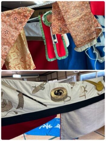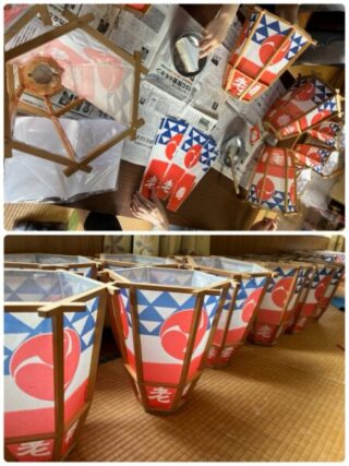 8月お盆の頃には、車山の幕などの虫干し、お祭り時に破損した六角提灯の張替えをいたしました。
